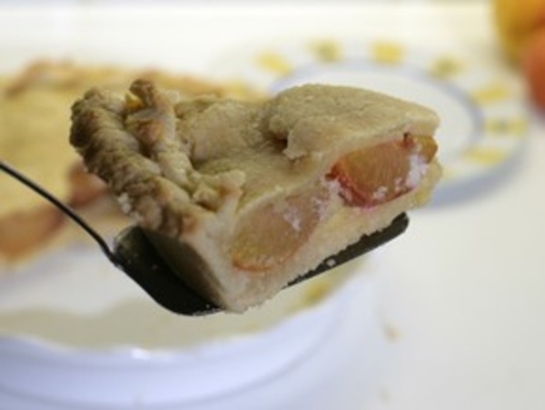 Замесите тесто, поделите пополам и охлаждайте не меньше получаса. Тем временем почистите сливы и залейте ложкой алкоголя (например, кальвадос или апельсиновый ликер). Посыпать столовой ложкой сахара.