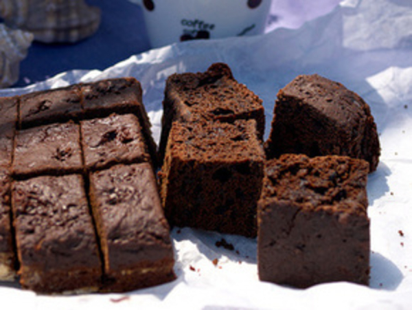 Небольшими порциями добавлять к мучной смеси кофе, постоянно размешивая, до тех пор, пока не получится не слишком жидкое однородное тесто. Подмешать в тесто орехи.