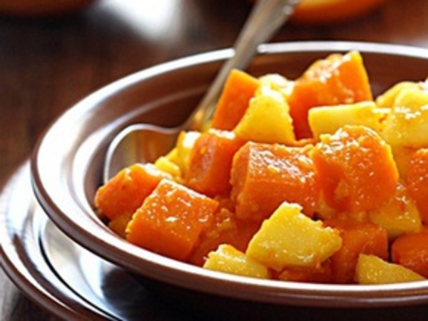 Имбирь и цедру измельчить, добавить к тыкве вместе с яблоками, соком и мармеладом. Готовить, аккуратно перемешав несколько раз, пока снова не выпарится большая часть жидкости.