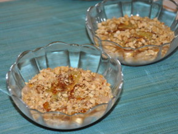 Перед подачей на стол положите жареные бананы поверх бананового пюре, посыпьте рублеными орехами. Сразу же подавайте на стол.
