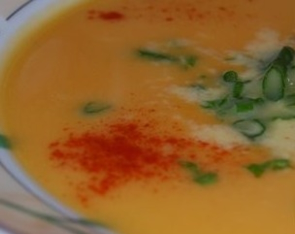 Тыкву очистить, нарезать и отварить вместе с целой луковицей до мягкости. Луковицу вынуть, тыкву пюрировать в блендере.