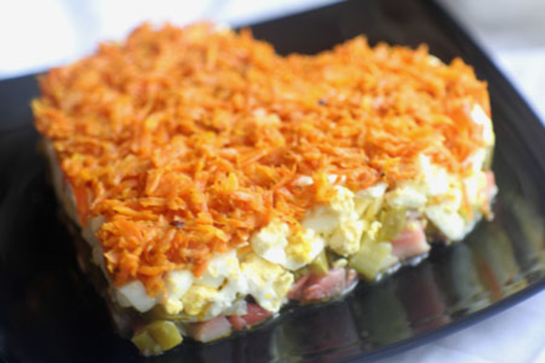 Салату желательно дать постоять 1 – 2 часа, затем снять форму.