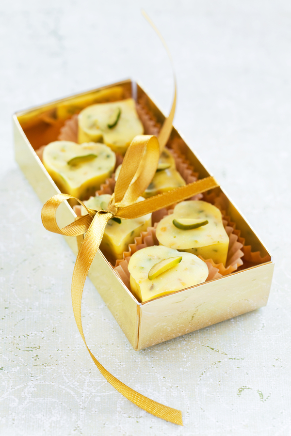 Конфеты из белого шоколада с лимоном и фисташками на День святого Валентина