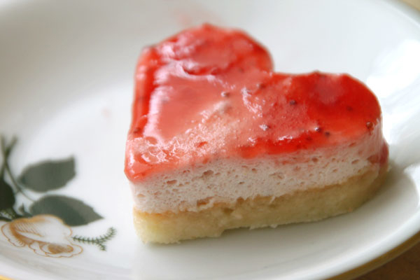 Клубничное желе подмешиваем к сливкам на низкой скорости. Суфле будет не очень сладкое, так лучше чувствуется вкус клубники и сливок. Теперь выкладываем сливочное суфле на кокосовый корж. Кстати, если он получился слишком твердым, перевернуть его твердой корочкой вверх и смазать кипячёной водой. За ночь он хорошо пропитается и резать будет очень легко.