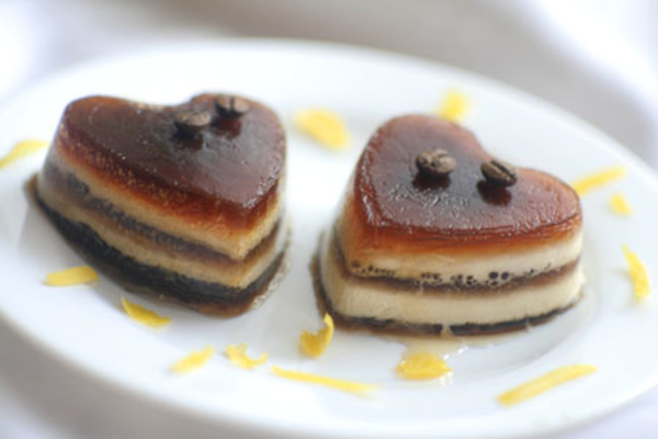 Набухший желатин ставим на медленный огонь и доводим до полного растворения желатина (не доводя до кипения). В кофейную смесь вливаем половину желатина и хорошо перемешиваем. Разливаем по формам (рассчитывай, чтобы осталось на другие слои) небольшую часть и охлаждаем.