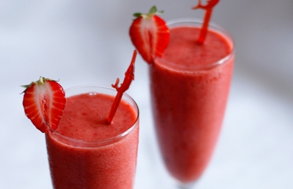 Рецепт безалкогольного коктейля из замороженной клубники, ананасового и персикового сока