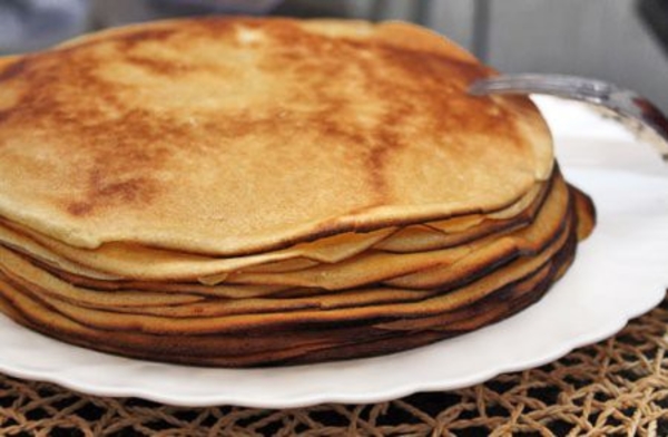 Для того, чтобы блины были вкусными и не сухими, нам понадобится сливочное масло. Его нужно размягчить в отдельной емкости (в микроволновой печи на небольшой мощности, либо просто вблизи источника тепла). Готовые блины складываем в стопку и, при помощи кулинарной кисточки, хорошо смазываем каждый блин сливочным маслом. Узнай, как выбрать сливочное масло.
