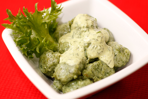 Если ты используешь свежий шпинат, то его надо побланшировать в кипящей воде 1-2 минуты, затем мелко нарезать. Если шпинат замороженный, его нужно просто разморозить. Из получившейся массы слепить шарики размером с грецкий орех.