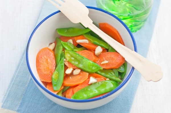 Стручки молодого гороха с морковью