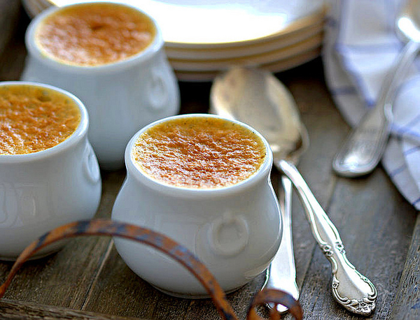 Духовку разогреть до 150°C. Молоко или сливки нагреть, добавив зернышки ванили и сам стручок. Яйцо и желтки взбить с сахаром ( масса должна стать светлой и увеличиться в объеме).