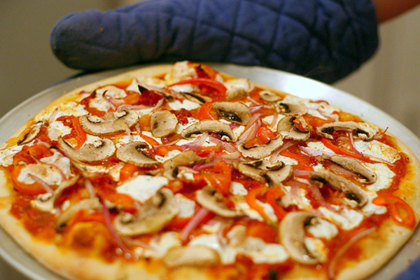 Пицца с грибами и луком