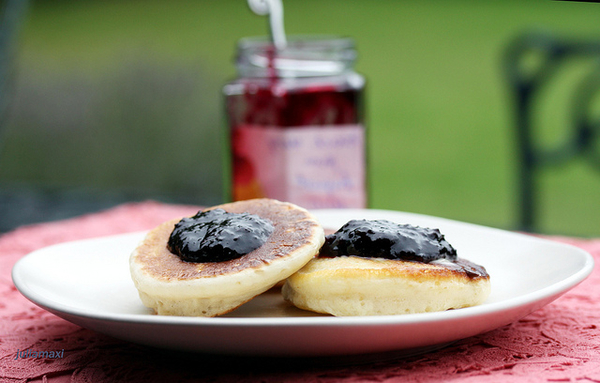Готовые оладьи переложить под кухонное полотенце. Подавать теплыми с вареньем.