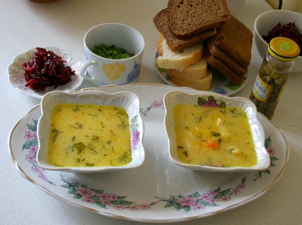 И вот, когда все более-менее обжарилось и было на вид вкусным, добавляем бульйон, чтоб покрыть содержимое, не больше. Потом разминаем толкушкой (или блендером), добавляем сливки– 200 мл . И уже после доливаем оставшийся бульон и порезанное  мясо на кусочки. Да, еще зелень.