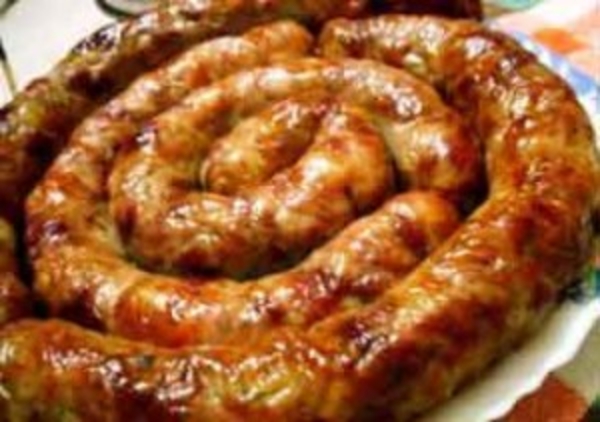 Начиняем свиные кишки и закручиваем через каждые 15-20 см. Концы колбасок перевязываем. Отвариваем домашнюю колбасу 10-15 минут в подсоленной воде. Отваренные колбаски поджариваем на свином жире.