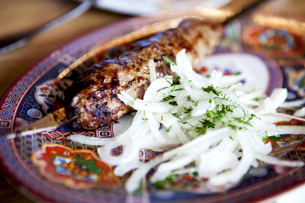 Пропустить куски мяса через мясорубку или измельчить блендером. Вместе с мясом измельчить очищенный лук и курдючный жир - он сделает блюдо особенно сочным. При этом не стоит увлекаться: привкус сала может перебить вкус мяса. Вымесить фарш руками до однородного состояния.
