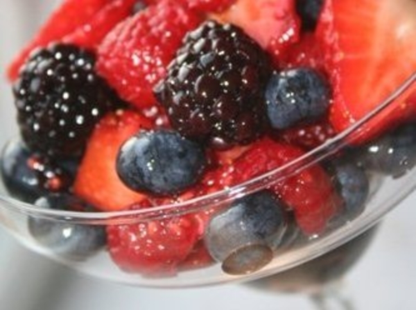 Клубнику нарезать, смешать с ежевикой, черникой, сахаром и уксусом. Затем аккуратно добавить малину. Накрыть салат пленкой и оставить на 30 минут. Через полчаса снова перемешать и подавать.
