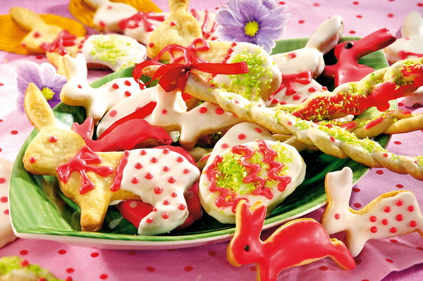 - Переложи тесто на стол, посыпанный мукой, и замеси тесто. Раскатай. Формочкой или при помощи трафарета вырежи зайцев. Запекай 15–20 мин.