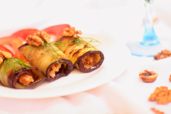 Рулетики из баклажанов с грецкими орехами