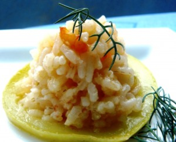 Засыпать рис, долить воду, накрыть сковородку крышкой и готовить блюдо не менее 20 минут. Когда рис будет практически готов, посолить и поперчить его по вкусу. Готовое блюдо подавать с салатом и черным хлебом.