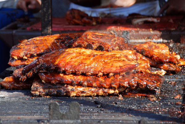Приготовление: 1 ½ кг свиных ребрышек наруби на порционные куски. Для приготовления маринада смешай 4 ст. ложки белого винного уксуса, 4 ст. ложки соевого соуса, ½ ч. ложки соуса Табаско, 2 ст. ложки томатной пасты,1 ст. ложку кунжутного масла, 1 ч. ложку сухой горчицы, два измельченных зубчика чеснока и 1 ст. ложку коричневого сахара. Готовым маринадом полей ребрышки, тщательно перемешай и оставь мариноваться на 3 часа. Жарь на решетке до готовности, за пять минут до готовности смажь ребрышки оставшимся маринадом.