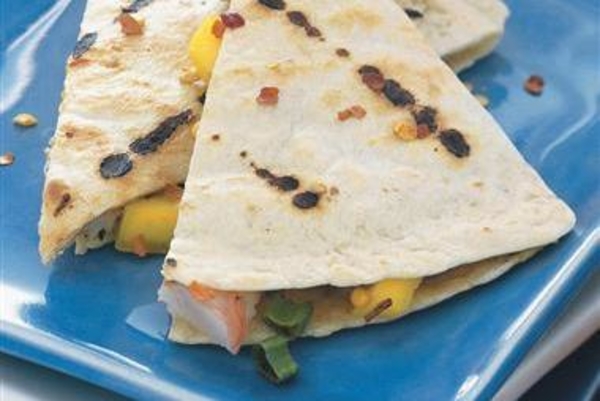 Приготовление: Нарезать ростбиф длинными полосками. Кольца лука обжарьте на гриле вместе с половинками сладкого болгарского перца. Лепешки тортилья (или куски лаваша) сложите пополам, на них — кусочки мяса, лук, нарезанный полосками перец, добавьте соус из петрушки. Лепешки оберните кусочком пергамента и закрепите зубочисткой.