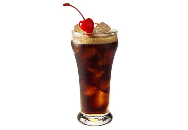 Снять сироп с огня, добавить в него соки лайма, лимона, апельсина, коричневый соус и экстракт ванили. Дать сиропу остыть, процедить. Готовый сироп можно держать в холодильнике до двух недель. В посуду подачи влить по полстакана сиропа, добавить содовую, лед и перемешать напиток. Кола готова, можно подавать ее ко столу.