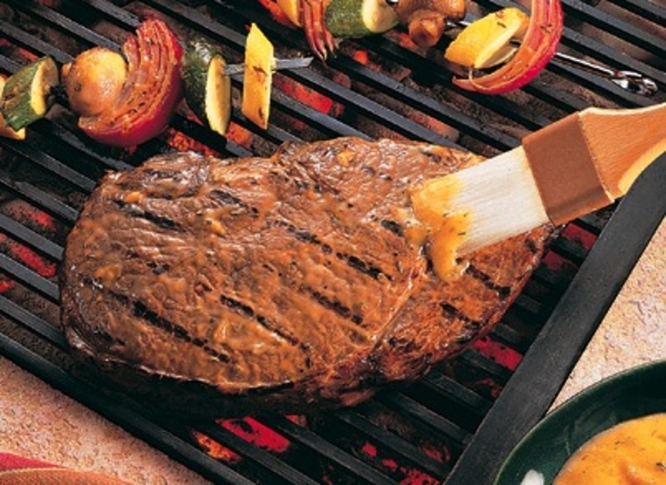 Промаринованные куски мяса обжарить на хорошо разогретом гриле по 5-7 минут с каждой стороны.