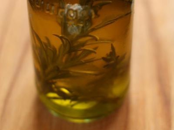 Для этого несколько веточек розмарина нужно сложить в чистую, плотно закрывающуюся бутылку и залить маслом. После этого убрать в темное место и дать настояться 2-3 недели. Чтобы получить более интенсивный аромат, нужно настоять масло на нарезанной зелени розмарина, а потом процедить и налить в бутылку.