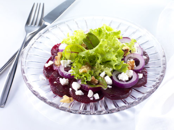 Возьми 2 средние свеклы, почисти и натри на крупной терке. Сложи в миску, выжми туда же сок из 1 большого лимона, добавь 1 чайную ложку соли. Перемешай, накрой и оставь на 20 минут. Затем добавь 2-3 горсти любых салатных листьев по вкусу и 1-2 столовых ложки рафинированного растительного масла. Перемешай, разложи по глубоким тарелкам, сверху положи по 3-4 тонких ломтика малосольной семги. Подавать в качестве салата.