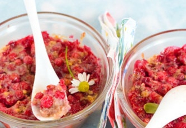 По одному добавить яйца, перемешивая смесь. Продолжая мешать, постепенно влить молоко. Добавить 150 г брусники. Смесь разлить по формочкам, посыпать оставшимися ягодами. Запекать 20-25 минут.
