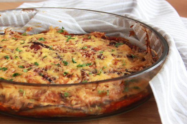 Форму для выпекания застелить пергаментом, смазать маслом и выложить слоями соус, баклажаны в панировке, тертый пармезан, половину моцареллы, порезанную небольшими кусочками. Повторить еще раз в той же очередности. Сверху украсить помидорами черри, разрезанными пополам. Выпекать при 170 градусах в течение 15 минут. Затем дать постоять 15-30 минут и только потом нарезать и подавать.
