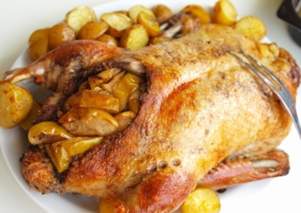 Готовим запеченную в фольге утку с кислыми яблоками и картофелем