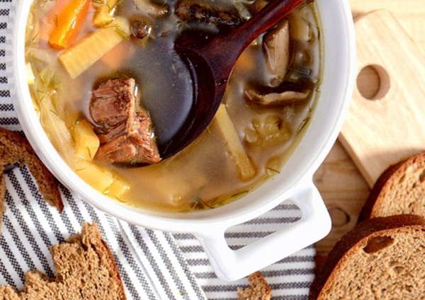 Щи с говядиной и грибами