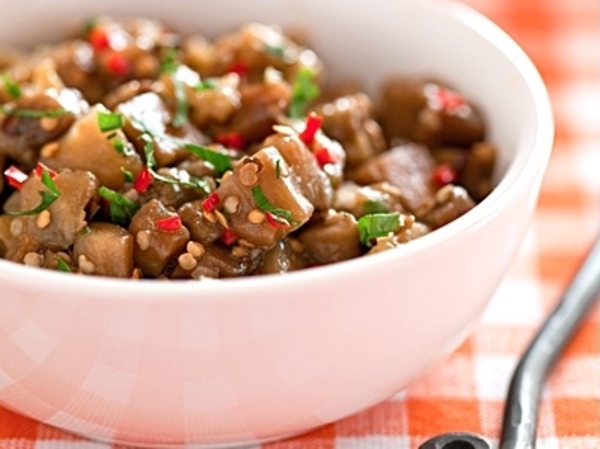 В рецепте указаны базовые ингредиенты, но можно добавлять то, что нравится. Например, приготовить баклажаны с соевым соусом вместо соли, добавить сладкий соус чили или тхину (тахини) и посыпать семенами кунжута при подаче. Можно добавить свежий или запеченный сладкий перец, чили, помидоры и т. д. Очень вкусно с хлебом, криспами, баклажаны можно завернуть в тонкий лаваш или подать на свежих помидорах.