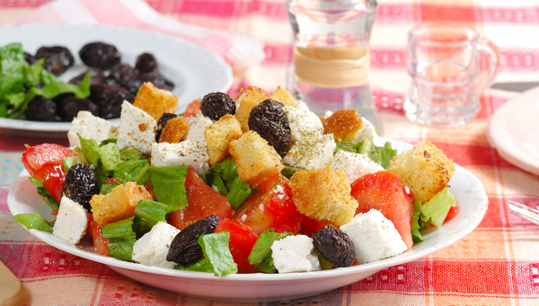 Хлеб порезать кубиками, сбрызнуть оливковым маслом, посолить и поперчить. Обжарить в духовке при температуре 170 градусов до золотистого цвета.