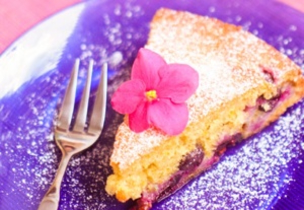 Муку с разрыхлителем просеиваем и добавляем в яичную смесь вместе с лимонной и апельсиновой цедрой. Аккуратно перемешиваем тесто и оставляем его постоять на 10 минут. Затем добавляем в него 2/3 винограда, перемешиваем и выкладываем его в смазанную сливочным маслом и присыпанную мукой форму. Отправляем ее в разогретую до 180 градусов духовку на 10 минут. Затем приоткрываем дверцу духовку и выкладываем на тесто оставшийся виноград.