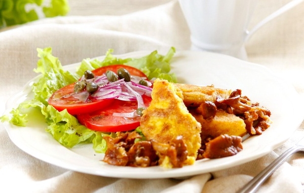 Лисички помыть, почистить и произвольно нарезать. Грибы отварить в подсоленной воде. Это займет около 10 минут. Воду слить или использовать в качестве грибного бульона.