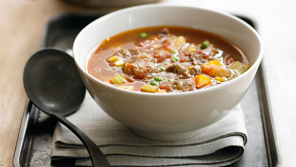 Густой овощной суп с говядиной