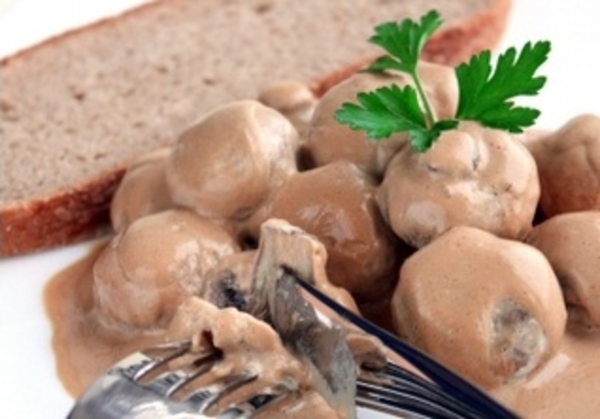 Добавить полученный соус к грибам, убавить огонь, тушить в течении 5-10 минут, все время помешивая, до легкого загустения соуса. Крышкой не накрывать, сразу же подать к столу.