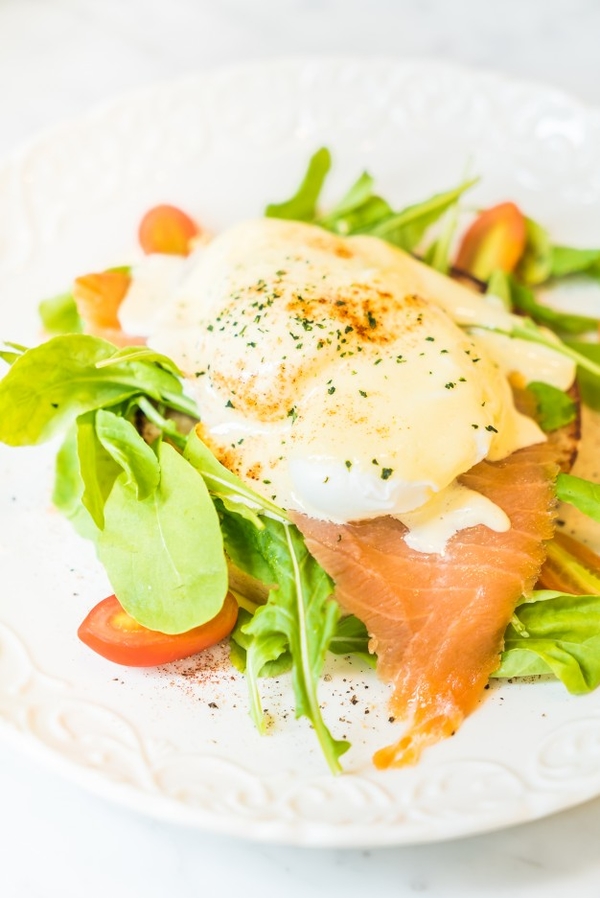 Этот рецепт отлично подойдет для романтического завтрака. Он очень похож на яйца Бенедикт, но готовится с лососем