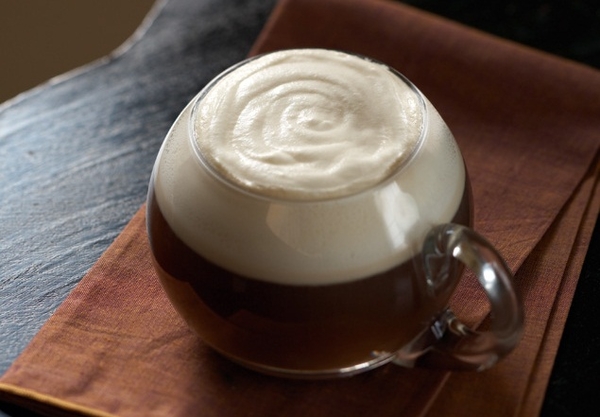 Сверху на горячий коктейль с кофе выложить взбитые сливки. Напиток можно присыпать тертым мускатным орехом или корицей.