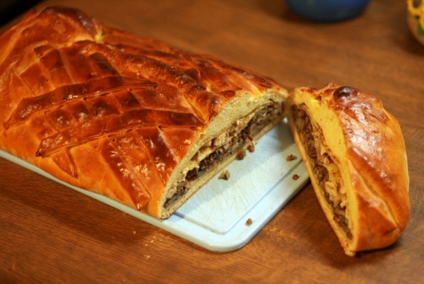 Поставить кулебяки в разогретую духовку и выпекать 35 минут при 185 С. Вынуть из духовки, накрыть полотенцем и оставить на 20 минут слегка остыть. Затем можно подать к столу.