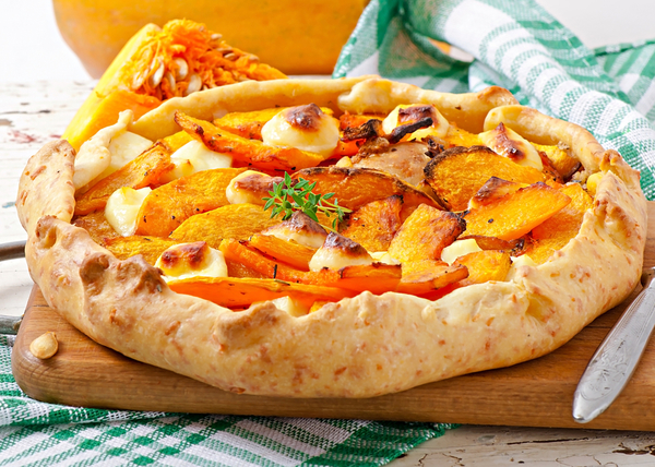 Пирог из слоеного теста с тыквой и беконом