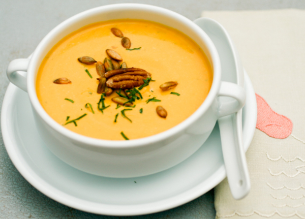 Ингредиенты: оливковое масло, 2−3 зубчика чеснока, 1 белая луковица, 1 красный болгарский перец, 600 г порезанной кубиками тыквы,1 перчик чили без семян (или острый соус табаско), 200 мл сливок. Если в семье не любят острого, можно обойтись без перца.
