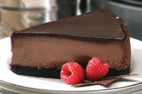 Шоколад топим на водяной бане или в микроволновке (2 минут на мощности 450). Вмешиваем шоколад в крем. Перекладываем в форму поверх основы и разравниваем. Ставим в духовку и печем 1 час. На дно ставим емкость с кипящей водой. У готового чизкейка при постукивании по бортику формы ложкой должна подрагивать только серединка.