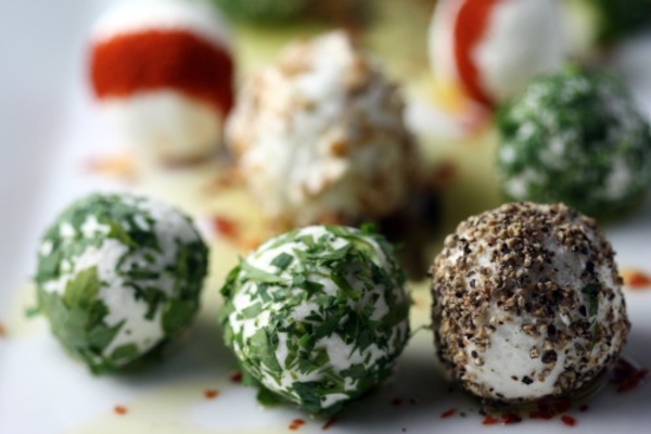 Когда масса затвердеет из нее нужно сформировать небольшие шарики. С хлеба срезать корочку, натереть на терке и обвалять в хлебных крошках шарики. Шарики перед подачей нужно выдержать в холодильнике.