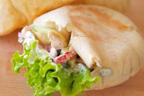 Пита с салатом из курицы и овощей