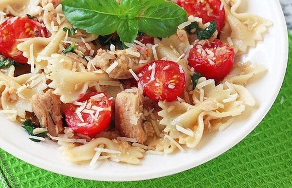 Паста фарфалле с тунцом и помидорами черри