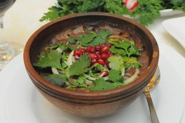 Подаем лобио в предварительно подогретой глиняной тарелке-сковородке – кеце. Оформляем блюдо гранатовыми зернышками и зеленью. Наслаждаемся лобио с горячим, свежеиспеченным лавашом и красным вином.