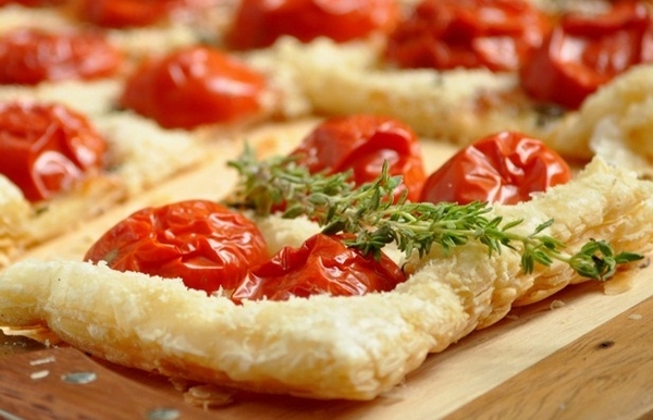 Рецепт простейшего тарта из слоеного дрожжевого теста с помидорами и сыром